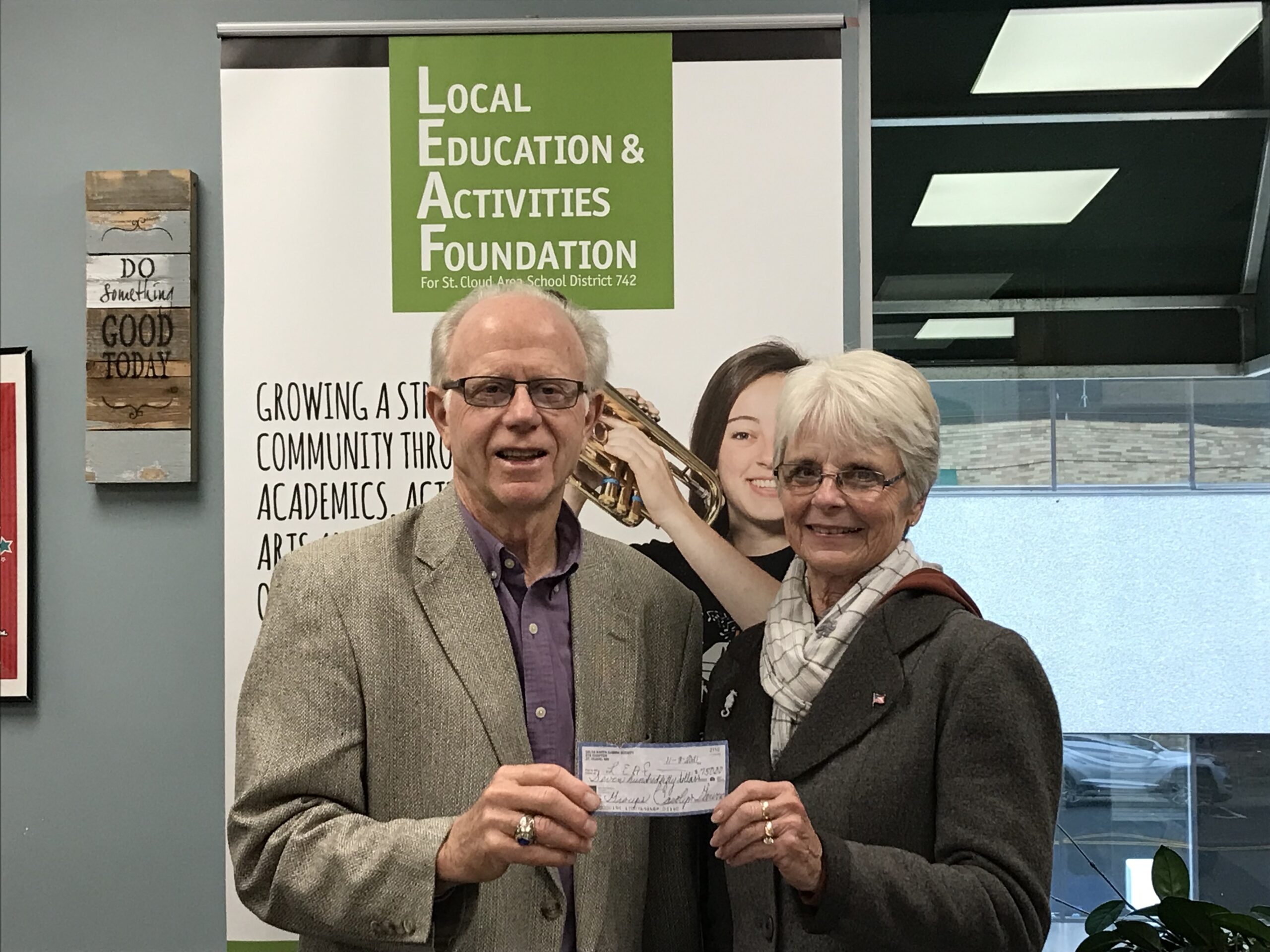 Pictured is Sue Williams from the Delta Kappa Gamma Society presents a $750 check to LEAF’s executive director, Bruce Hentges, on Wednesday, November 10. Delta Kappa Gamma Society International promotes professional & personal growth of women educators and excellence in education. DKG was founded in 1929 and has chapters in all 50 states, Europe & Japan. DKG endows scholarships to aid outstanding educators, support local educators in the classroom and works to impact education world-wide. Many local chapter members are current or former employees of District 742.